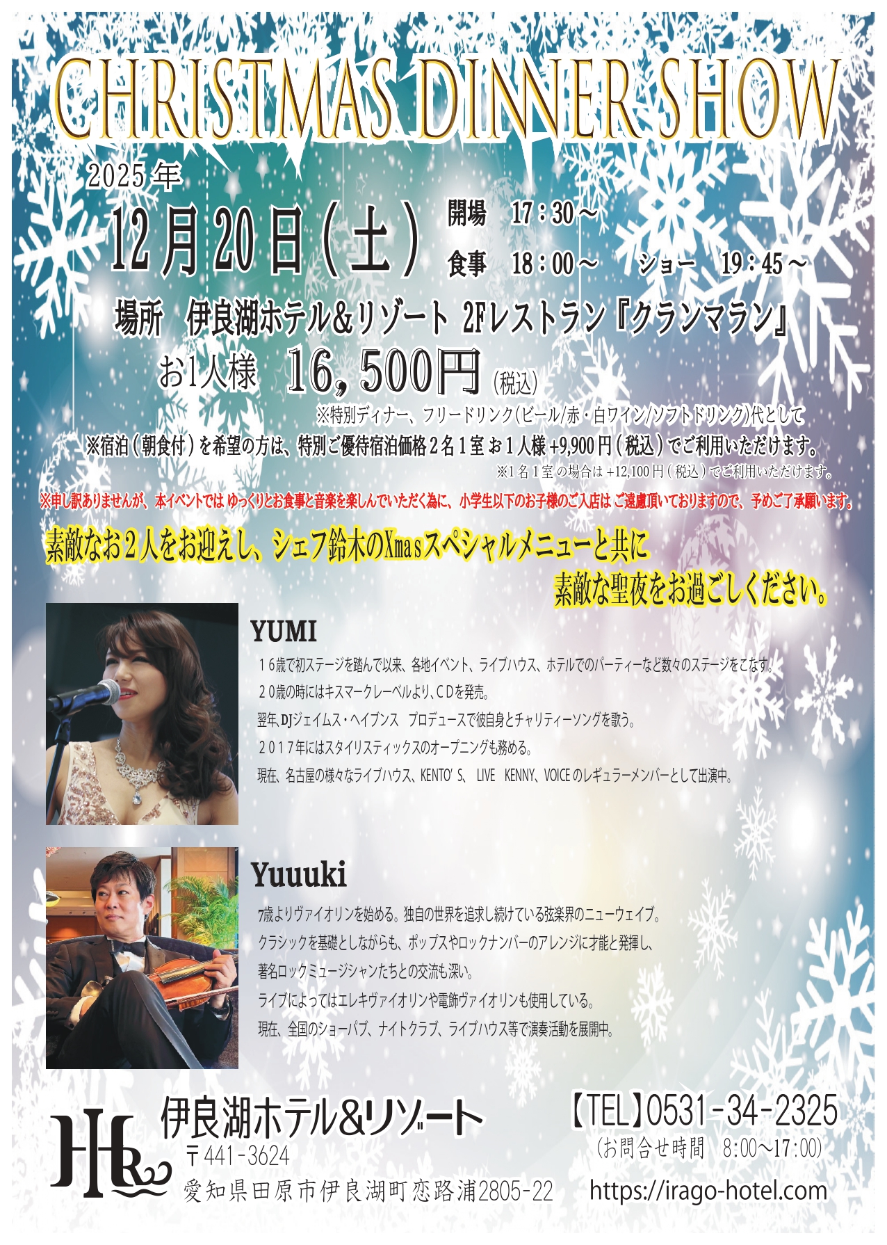 素敵なお二人をお迎えし、シェフ鈴木のXmasスペシャルメニューと共に素敵な聖夜をお過ごしください。